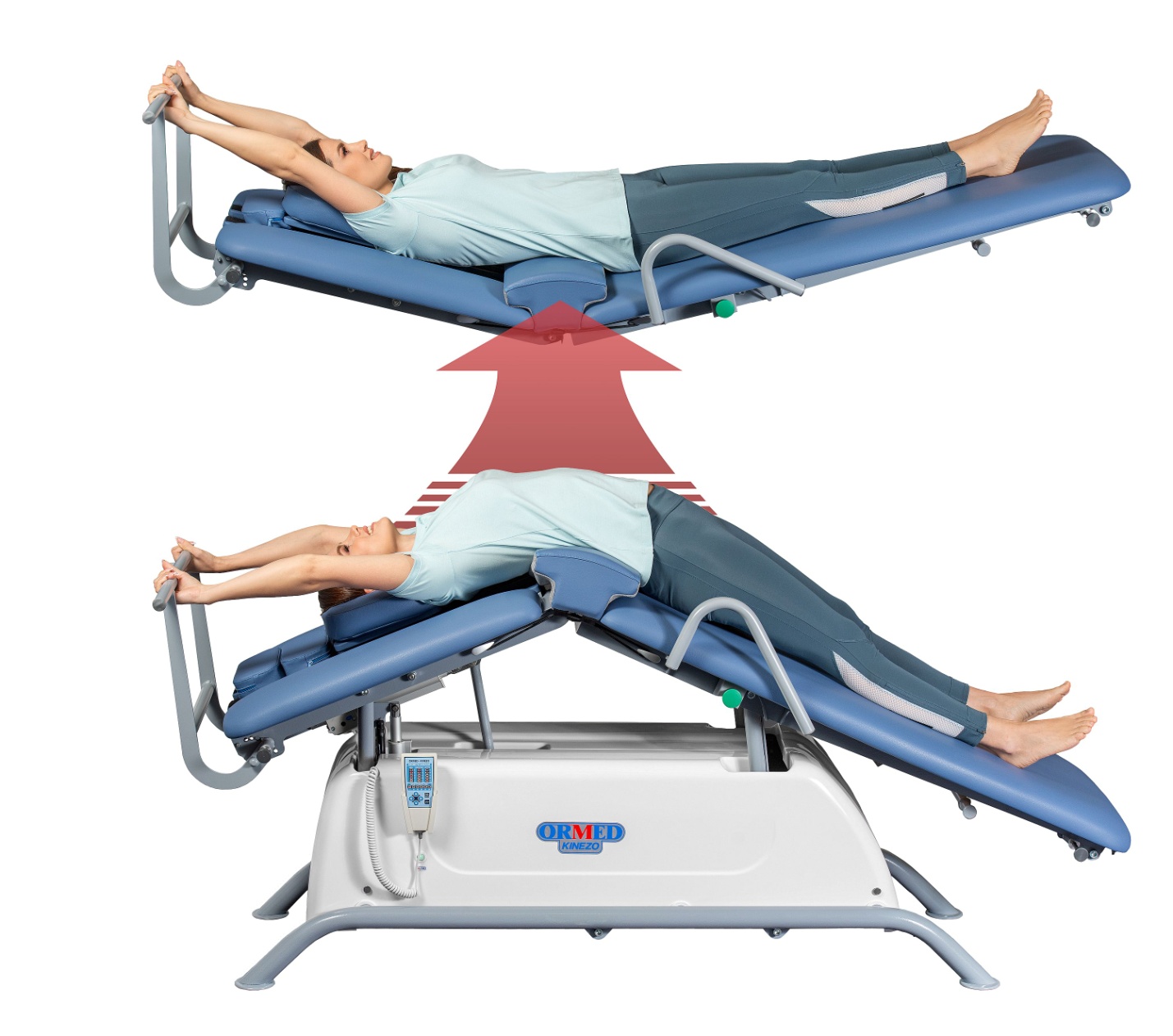 За время одной процедуры производится около 300 движений (сгибаний и разгибаний) с помощью Ormed-кинезо – таким образом происходит разработка подвижности и гибкости околопозвоночных органов дыхательной системы. Аппарат позволяет увеличивать амплитуду колебаний и менять ее уровень — выше нуля, ниже нуля от горизонтальной линии; у него очень удобный пульт управления с возможностью выбора разных программ и алгоритмов лечения.