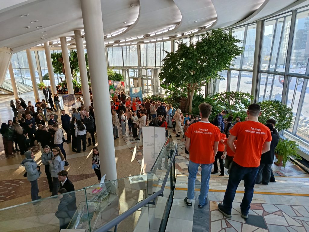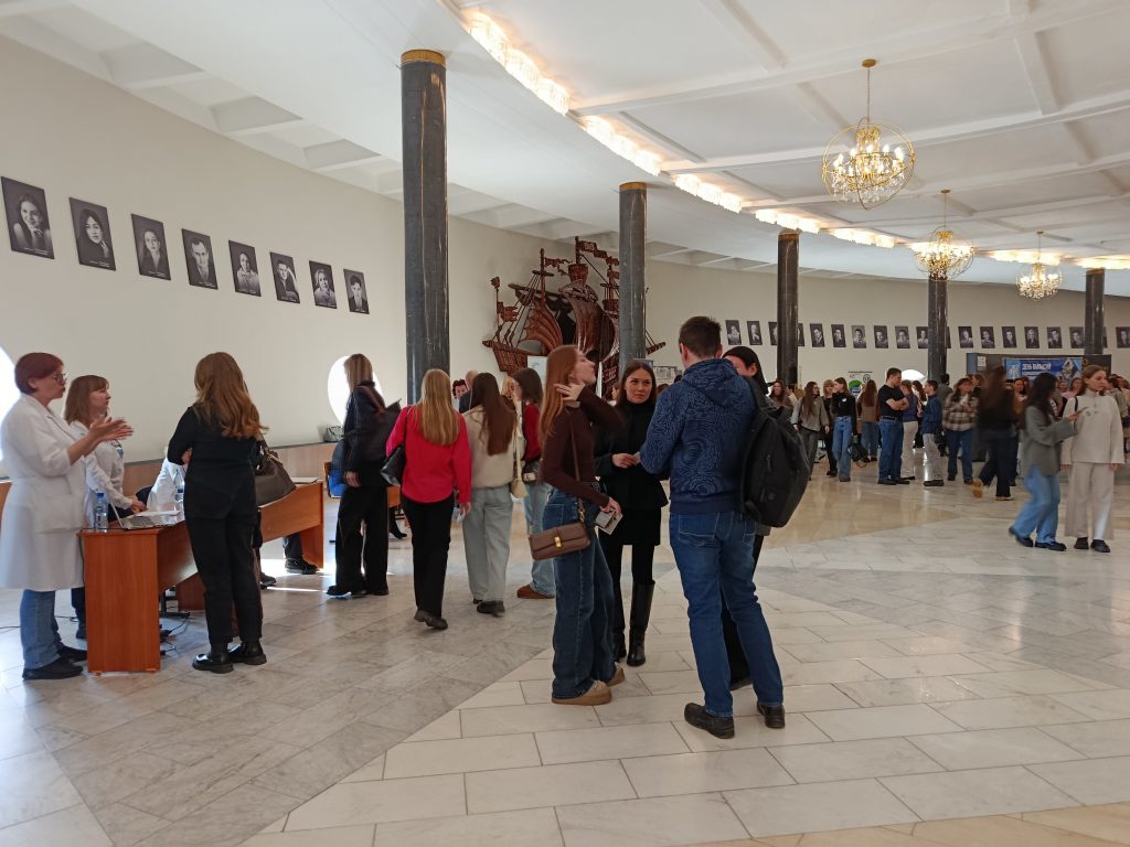 Есть стенды на мероприятии и у крупнейших больниц областного центра, и у расположенных в центре города поликлиник. Студенты подходят небольшими группами, задерживаются, задают вопросы.